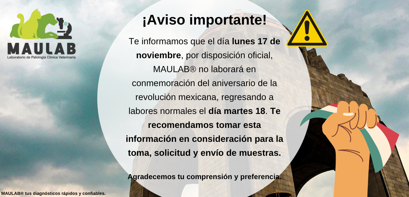 Magalí Verónica Moreno Fernández, representante de MAULAB Laboratorio de Patología Clínica Veterinaria, con domicilio en Merced Gómez #28, Colonia Merced Gómez, Benito Juárez, CP 03930, CDMX utilizará sus datos personales recabados para: solicitar información relevante para la interpretación de los resultados de laboratorio de los pacientes, comunicar información crítica para el diagnóstico y tratamiento de los pacientes, entregar resultados vía electrónica, invitarlo a participar en nuestro “Club de pláticas entre MVZ”, realizar encuestas de satisfacción, realizar avisos importantes con respecto a los servicios que presta el laboratorio e informarlo de promociones. Para más información acerca del tratamiento y de los derechos que puede hacer valer, usted puede acceder al aviso de privacidad integral de MAULAB en nuestra página de internet www.maulab.com.mx